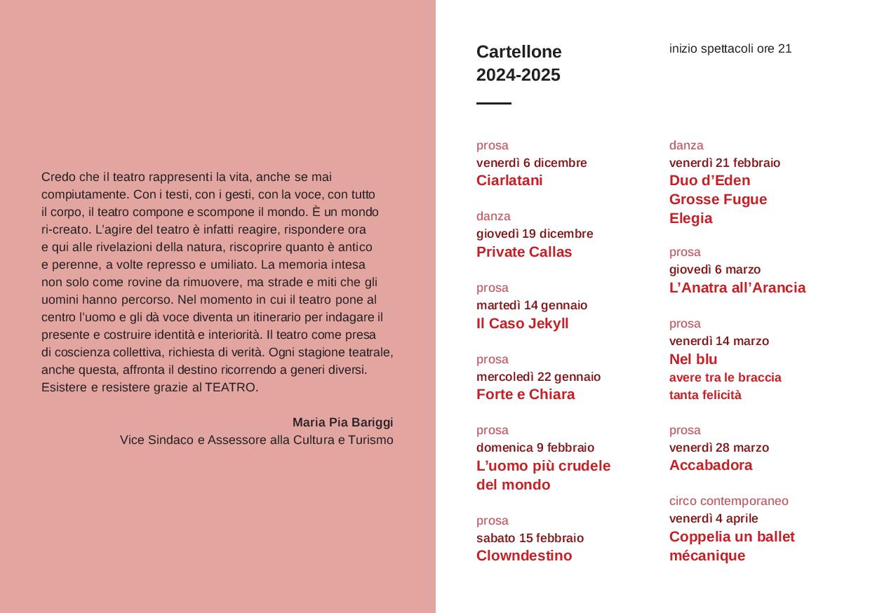 Nuovi abbonamenti dal 22 novembre. Singoli spettacoli in vendita dal 29 novembre.