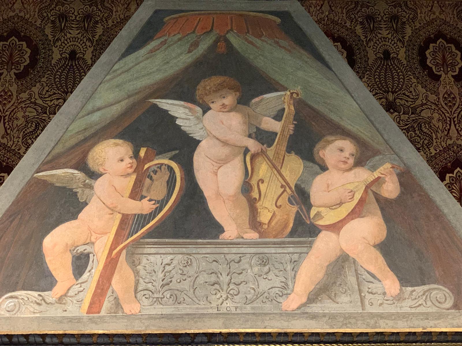 La musica è un elemento ricorrente nella quotidianità dei fratelli Bagatti Valsecchi. Fausto fece decorare la cappa del camino del proprio salottino con un’affascinante raffigurazione di puttini musicanti mentre Giuseppe inserì nel suo, diversi strumenti musicali, tra cui mandolini, liuti e un curiosissimo pianoforte. La casa rifletteva così la loro passione per l'arte della musica. Partendo dalla narrazione bagattesca, nella seconda parte dell’incontro si andranno a esplorare alcuni grandi capolavori del passato in cui si celebra il rapporto fra musica e miti classici.